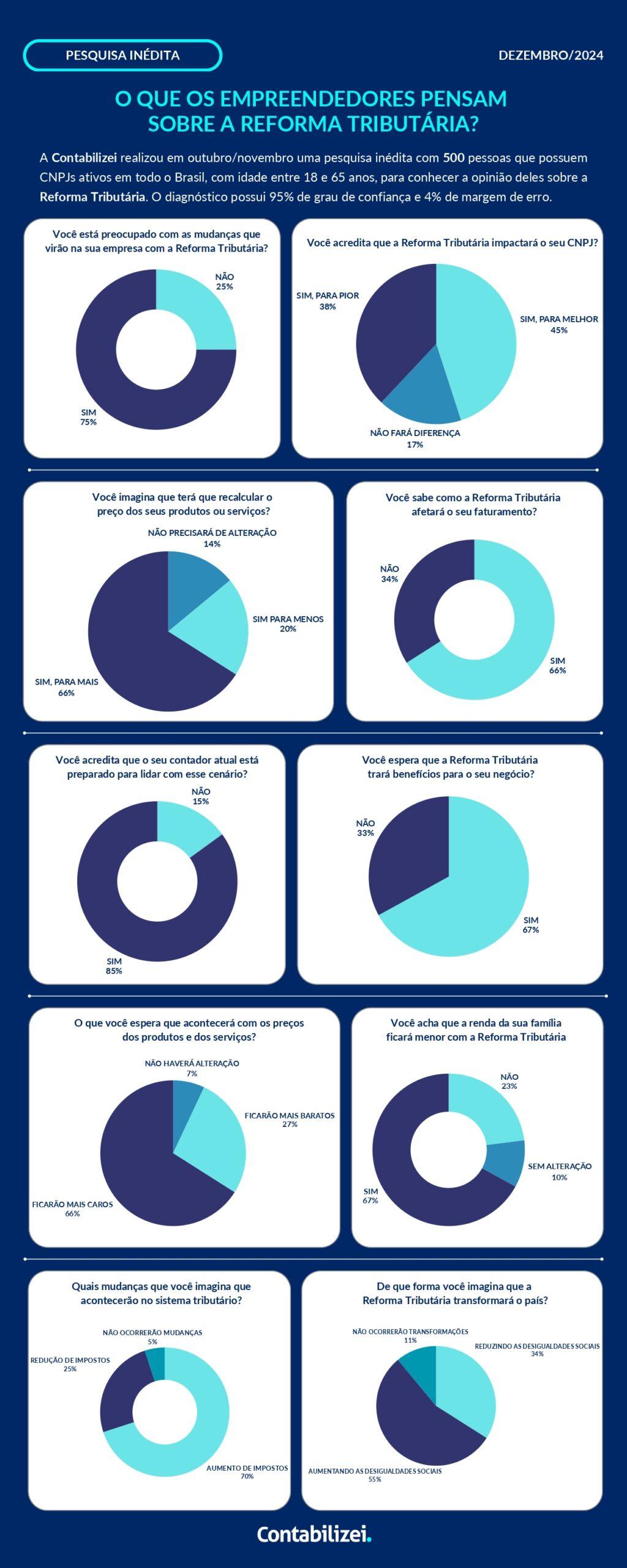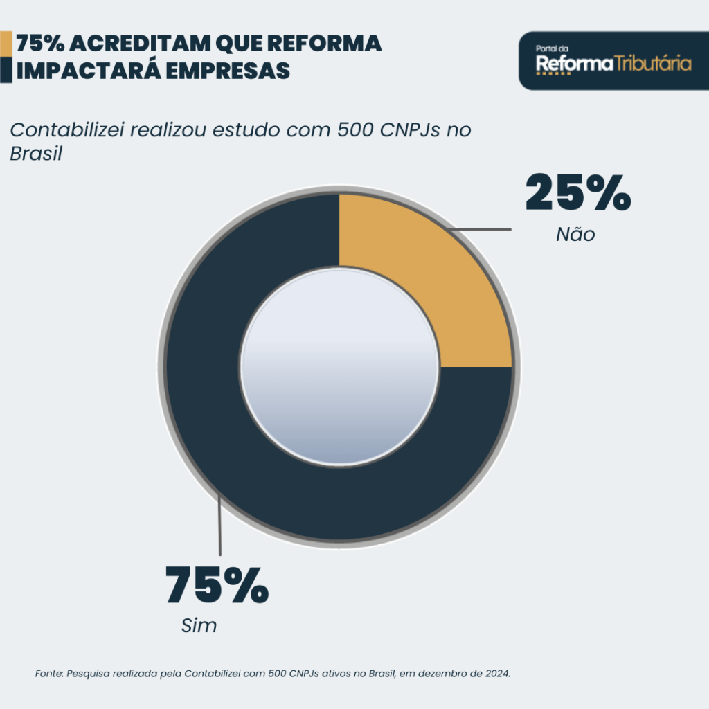 Outro dado interessante alcançado a partir da pesquisa, indica que 75% dos empreendedores estão preocupados com as mudanças que a Reforma Tributária trará para suas empresas, onde 66,4% acreditam que precisarão recalcular o preço de seus produtos e serviços.