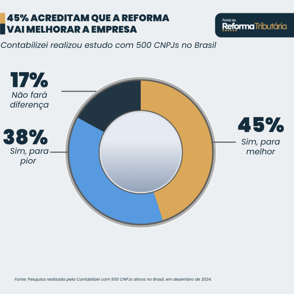 Por fim, a pesquisa também foca nas expectativas dos empresários em relação ao futuro com a reforma tributária. 52,2% acreditam que a Reforma Tributária afetará as suas vidas para melhor, 51,8% imaginam que a Reforma Tributária potencializará o crescimento econômico e 51,2% pensam que haverá geração de novas oportunidades de empregos.